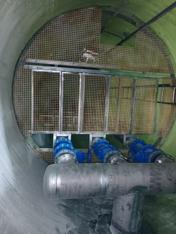 小型玻璃钢泵站(筒体直径≤3m),简易格栅,提升至人工湿地 / 小型处理站